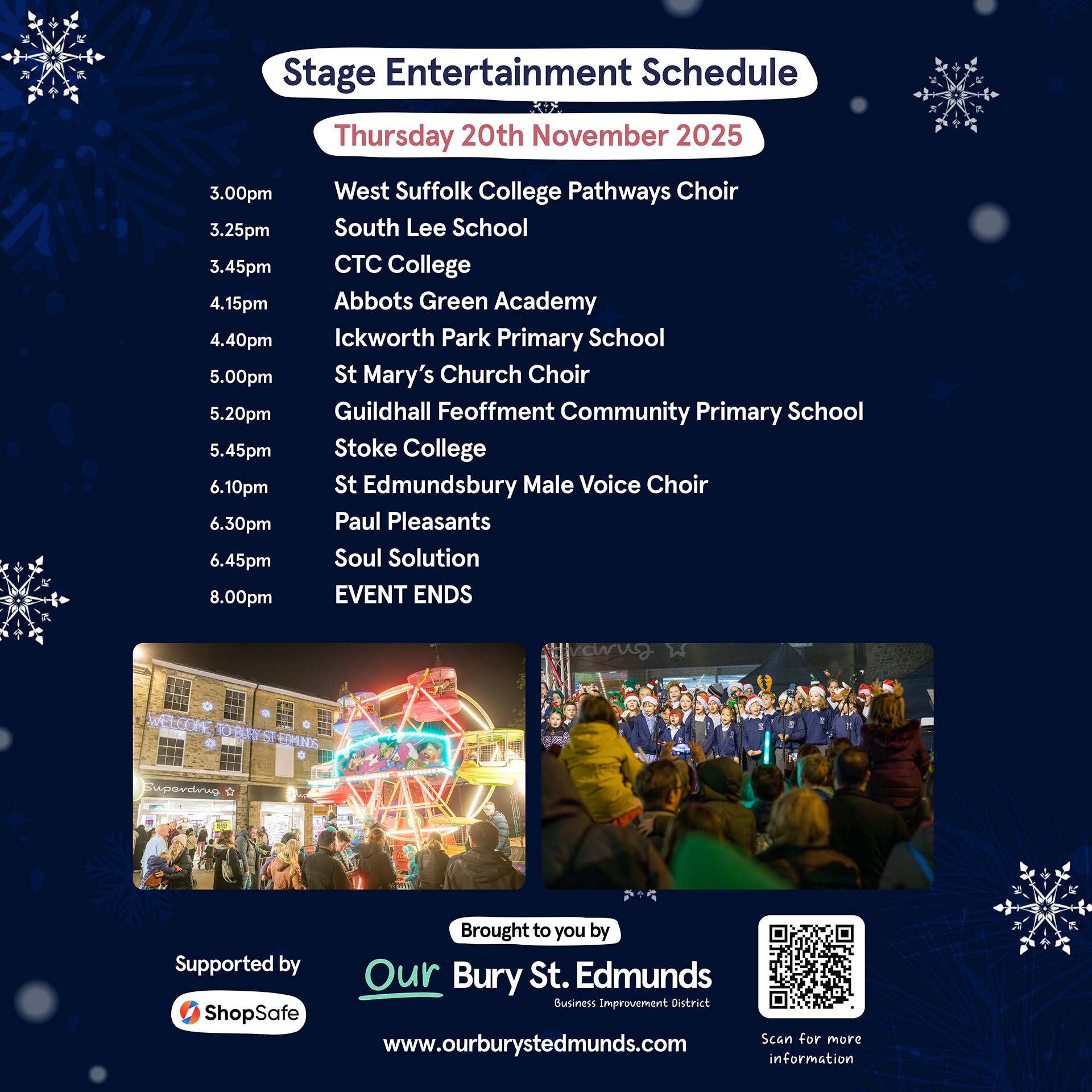Come and listen to us at this FREE event on the stage outside Moyse's Hall Museum, Buttermarket.